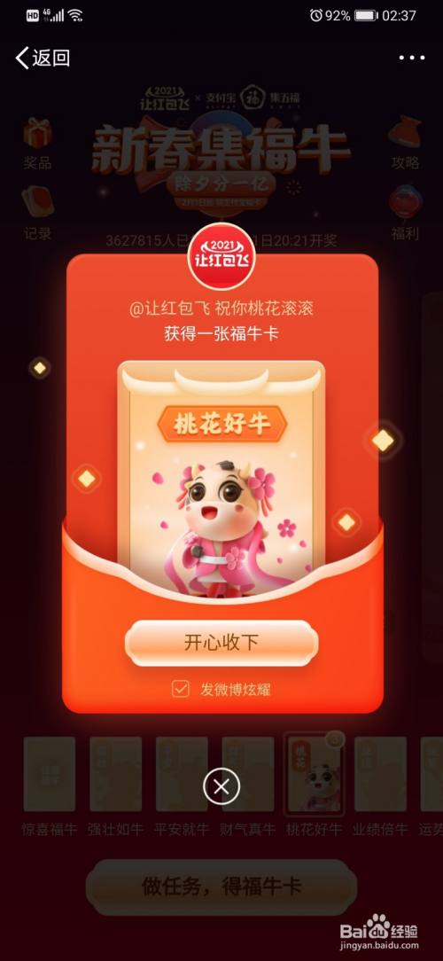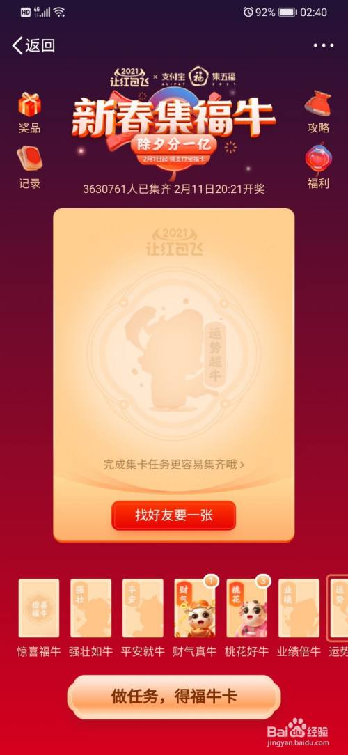 除此之外,这个活动是有使命的,因为一共需要7个福牛卡,所以使命很关头。