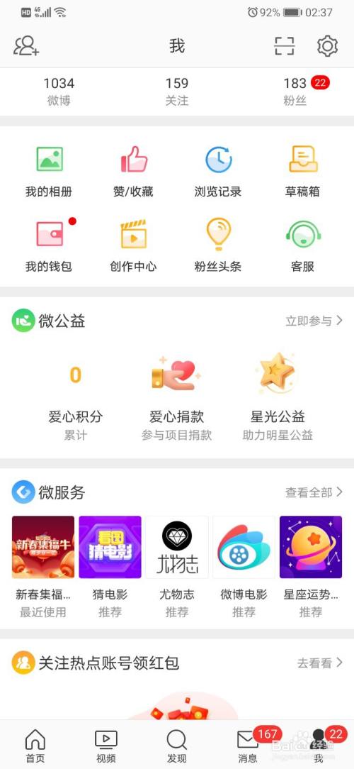 我们来到微博的本家儿界面,在我的界面傍边,有一个选项叫做新春集福牛,点一下进入。