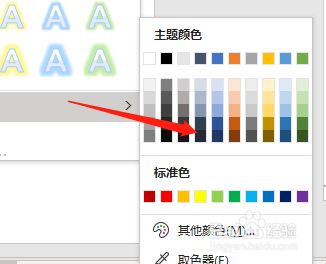 2.在“文本结果”中,点击“发光”,再点击“其他发光颜色”。