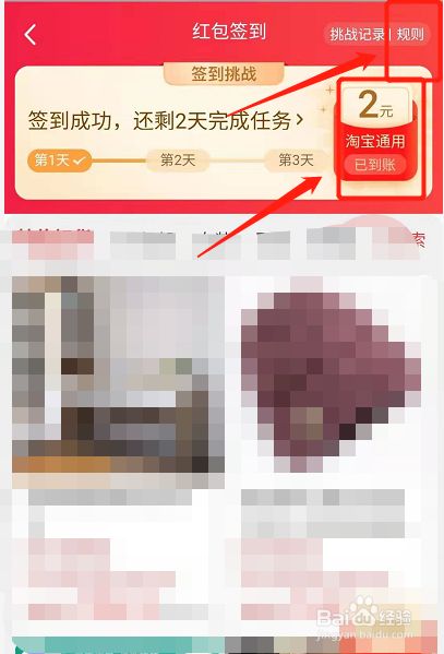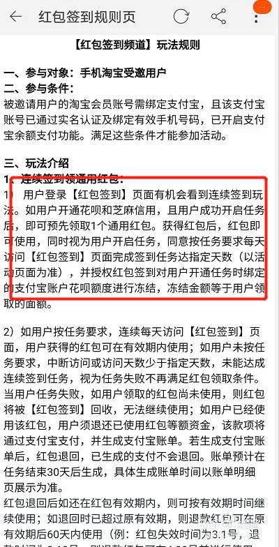 显示开通当作功之后,主动返回红包签到页面,即可看到通用红包已领取,点击右上角的法则。