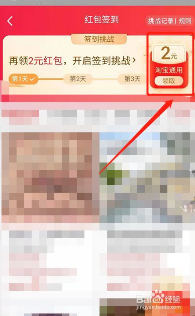 进入到红包签到页面,点击右上角的淘宝通用红包,点击领取。