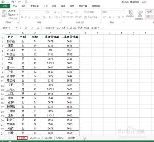 第四步:切换至第二个表格中,选中表格中的全数数据。