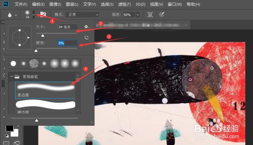 点击恍惚东西上方选项卡中的倒箭头—>在弹出的选项卡中更改恍惚东西的大小、硬度、画笔类型等结果