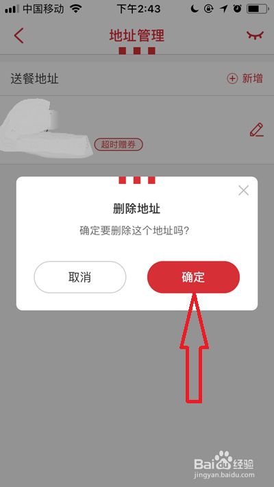 这时会弹出以下窗口,我们点击【确定】即可删除该配送地址啦!