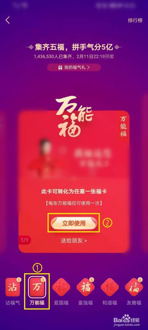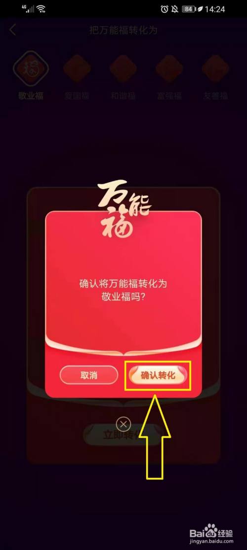 在页面上方选择【敬业福】,然后点击【当即转化】。