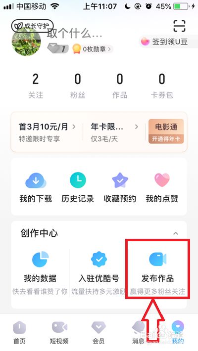 然后我们点击创作中间下方的【发布作品】