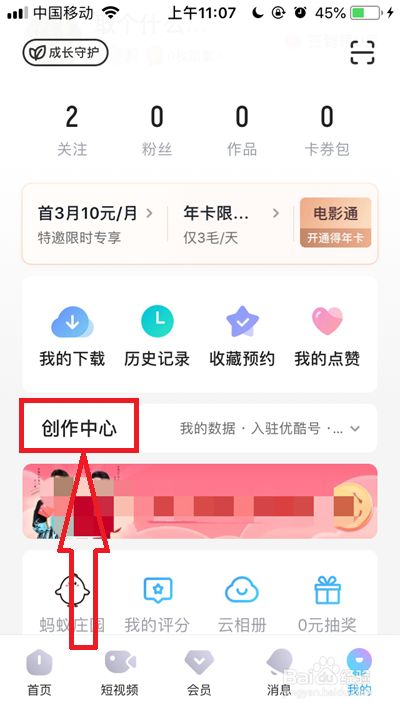 在优酷我的页面,我们点击【创作中间】