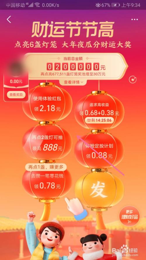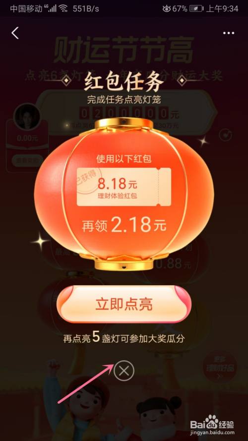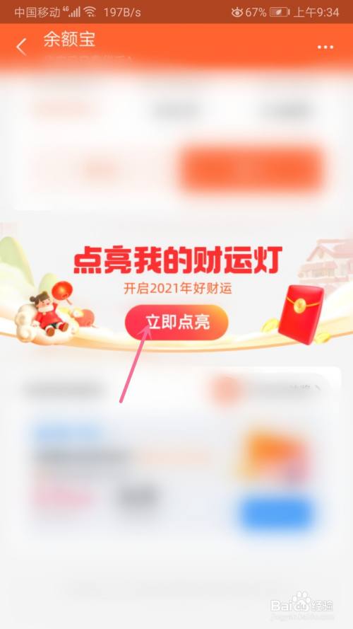 然后切换余额宝的页面选择”点亮我的财气灯“进口