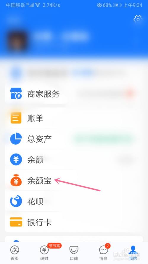 进入支付宝之后切换我的页面选择”余额宝“选项