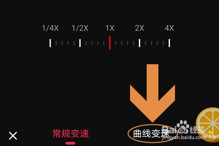 在视频编纂界面的下方,我们可以看到当前红线标注的位置为1X,也就是说当前的视频播放速度为正常,标的目的右就是加速播放,反之就是放慢速度;