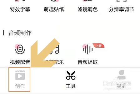 我们需要借助爱剪辑APP,点击下图所示的“创作”然后就能找到应用自带的变速功能了;