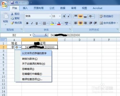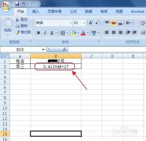 打开Excel表格之后,紧接着输入相关的数据,好比这里输入姓名和证件号,成果号码显示为了E+17的形式,这较着是科学计数法的显示形式,需要将其改回。