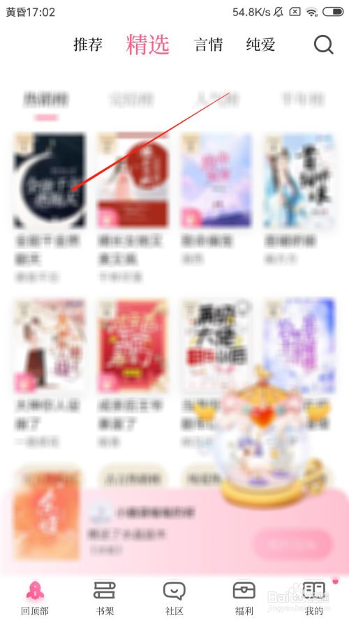 打开红袖念书app之后,点击一本本身要看的小书进入。