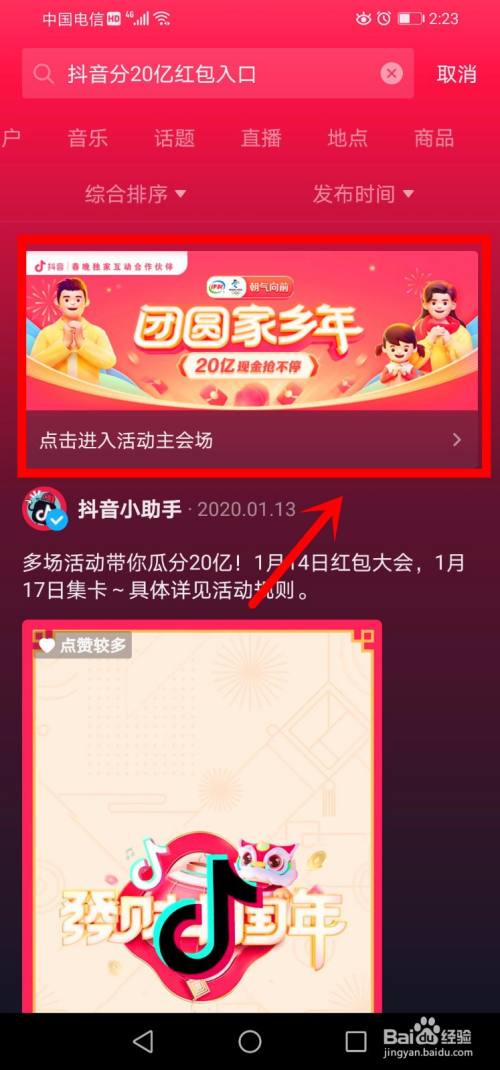 在搜索框里输入抖音,然后找到抖音分20亿红包进口点击进入