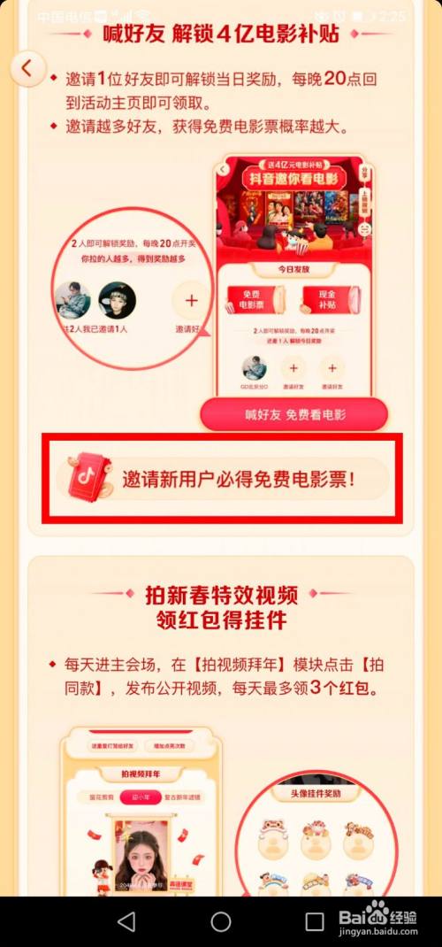 2.邀请老友可解锁奖励,邀请新用户必得免费片子票