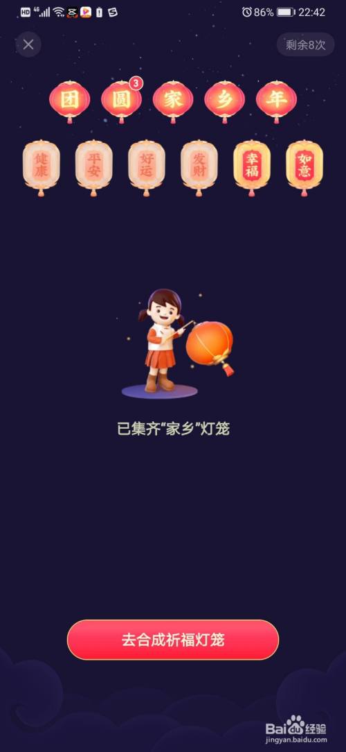 我们在这里开启我们的灯笼,当我们集齐5个之后,系统就会主动提醒我们去合当作祈福灯笼。