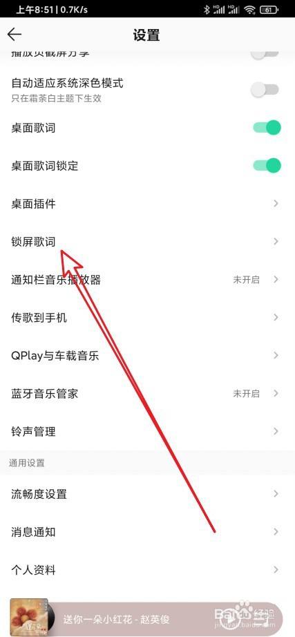 然后在打开的页面找到利用QQ音乐锁屏设置项。