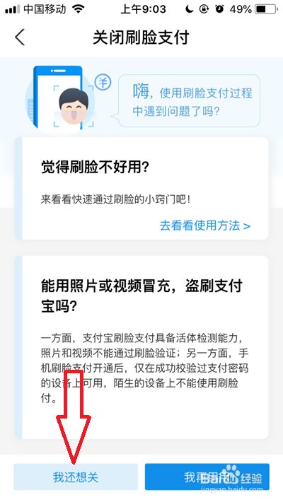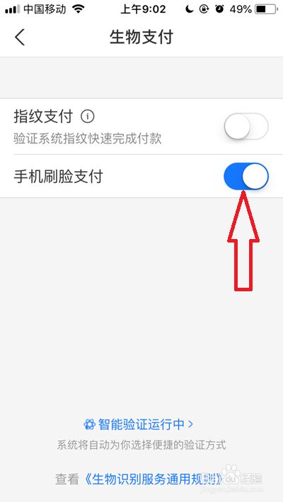 在生物支付页面,我们将【手机刷脸支付】右侧的开关按钮点击封闭。