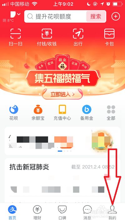 在苹果手机上打开支付宝后,点击右下角的【我的】