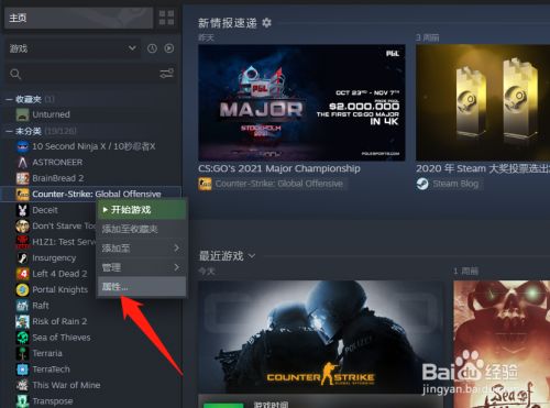 右键点击该游戏,然后点击属性
