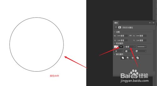 按住【shift键】,在画面中,画一个圆,设置相关的属性