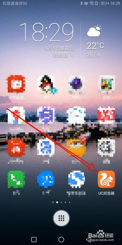 首先点击手机屏幕上的UC浏览器图标。