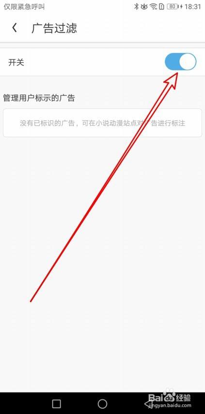 接着在打开的告白过滤页面找到开关设置项。