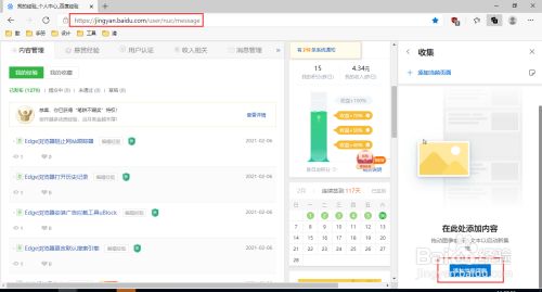 启动Edge浏览器,点击“集锦”图标,打开集锦面板。