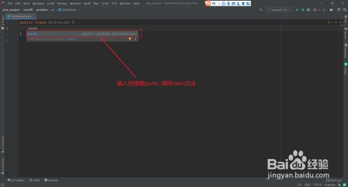 2.输入快捷键psvm, 挪用main方式
