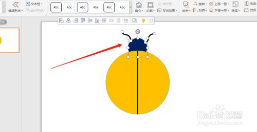 WPS演示中绘制七星瓢虫图案,最后绘制七个红色的小正圆就可以了,如图所示。