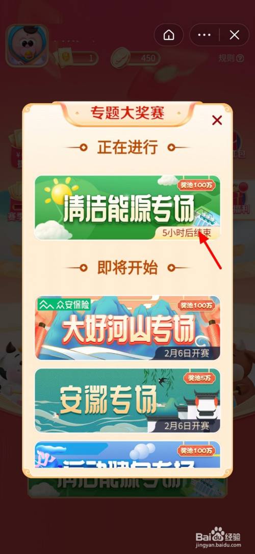 在专题大奖赛页面,以洁净能源专场为例,点击 洁净能源专场;