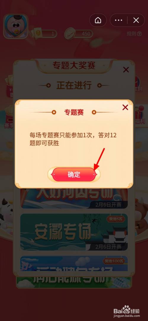 在答题页面,点击 专题赛;