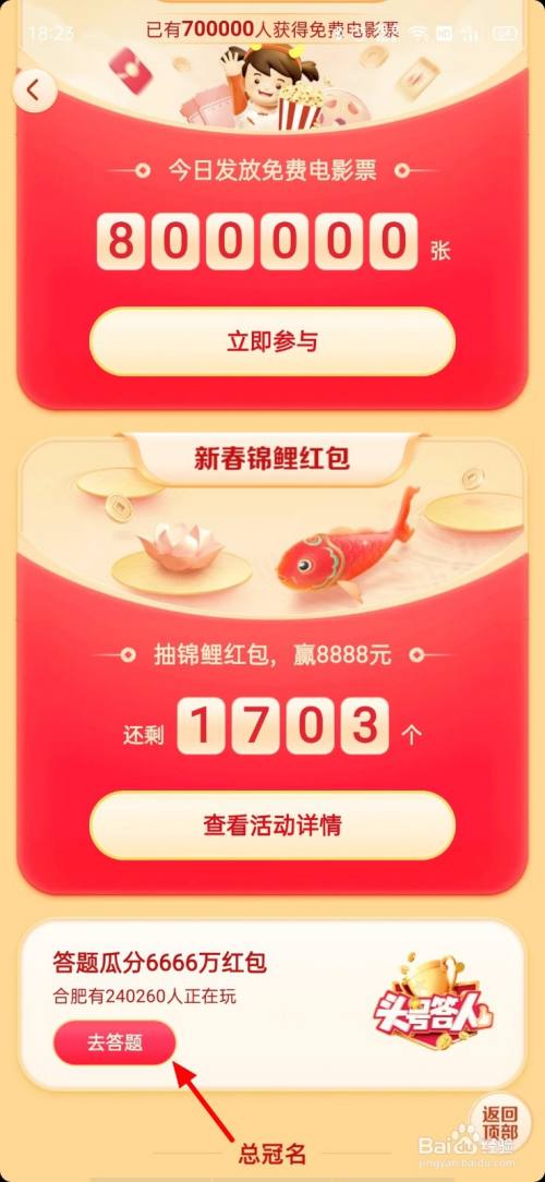 在团聚家乡年页面,标的目的上滑动,找到头号达人,点击 去答题;