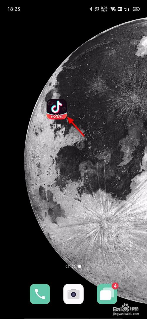 手机开机,在手机桌面打开 抖音;