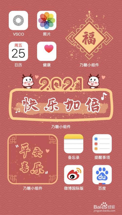 可以按照以上步调,添加一个中组件和两个小组件,桌面美化完当作!