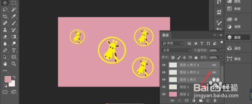 肆意选择链接中的一个图层—>进行自由变换操作,则整个链接图层均进行变换操作