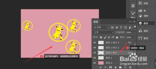 肆意选择链接中的一个图层—>进行移动操作,则整个链接图层均移动