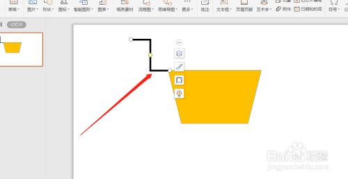 WPS演示中绘制购物车图案,首先点击外形的小箭头,如图所示。
