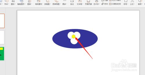 PPT幻灯片中绘制钱袋蛋图案,最后绘制一个黄色的小正圆就可以了。