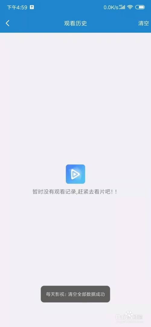 点击之后,天天影视app的不雅看汗青就清空当作功了,如图所示。
