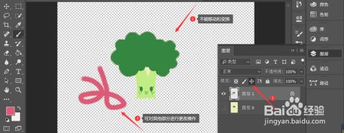 在图层文本框中选择锁定图像像素—>此时,不成以对图像进行涂改等操作,但可以对图像进行变换和移动