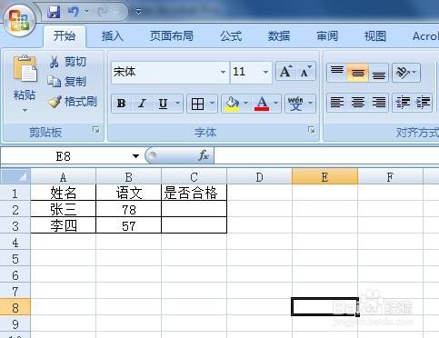 好比针对下面的这张表格,这里作为引例,输入如下数据,想要在“是否合格”一栏中主动按照成就来输出。