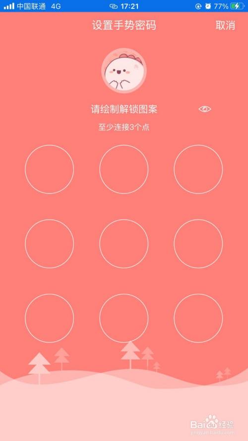 在“设置手势密码”界面中,绘制解锁图案即可。