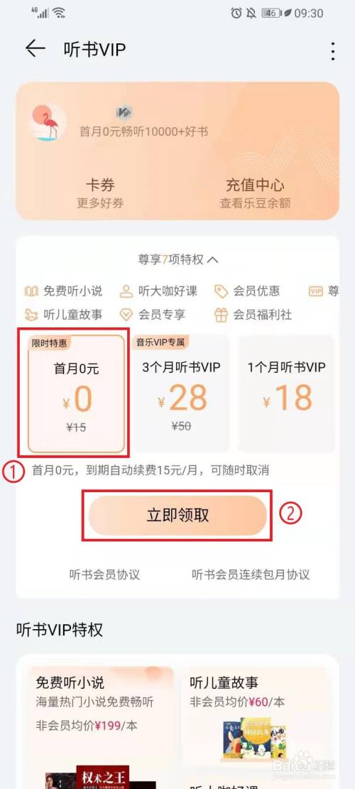 步调一:如何领取免费领取听书会员