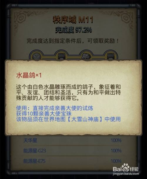 奖励:水晶鸽【直接完当作亲善大使的试练】