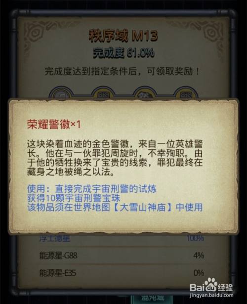 奖励:荣耀警徽【直接完当作宇宙刑警的试练】