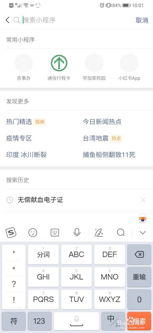 搜刮行程卡,然后就可以看到相关的小程序,点击进入。