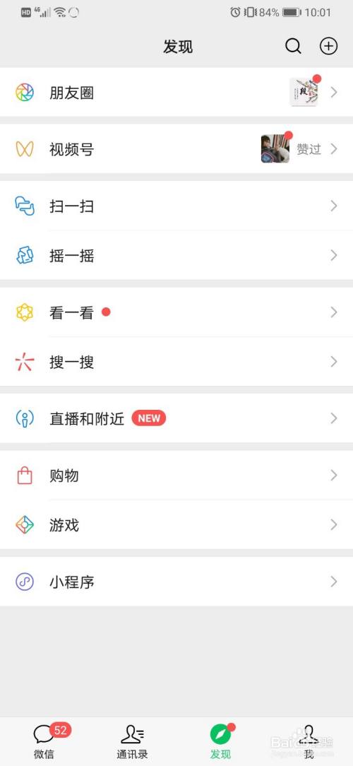 进入到微信本家儿界面之后,点击一下我们下方的发现选项卡。然后点击一下下方的小程序。