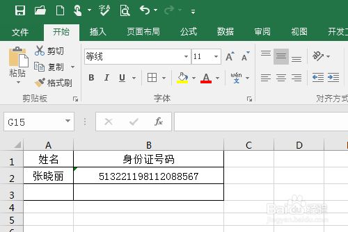 这下,我们就当作功在excel表格内输入了身份证号码啦!(以下截图内的数字为我随便输入的数字,仅供参考)