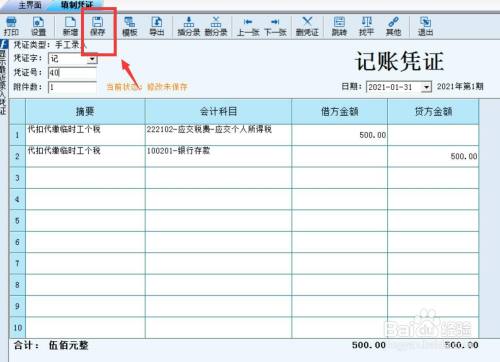 选择“录凭证”。